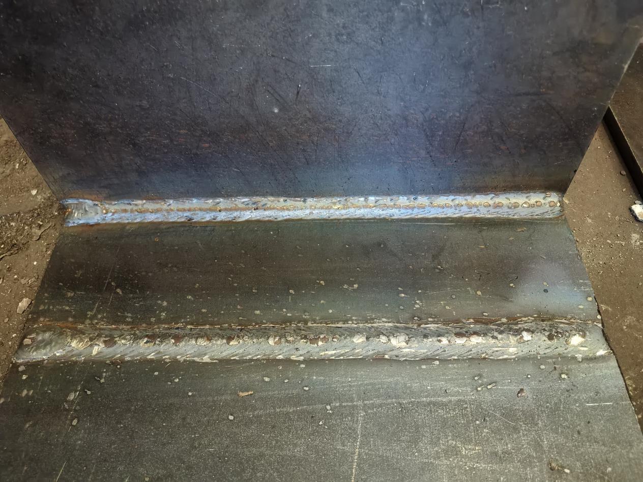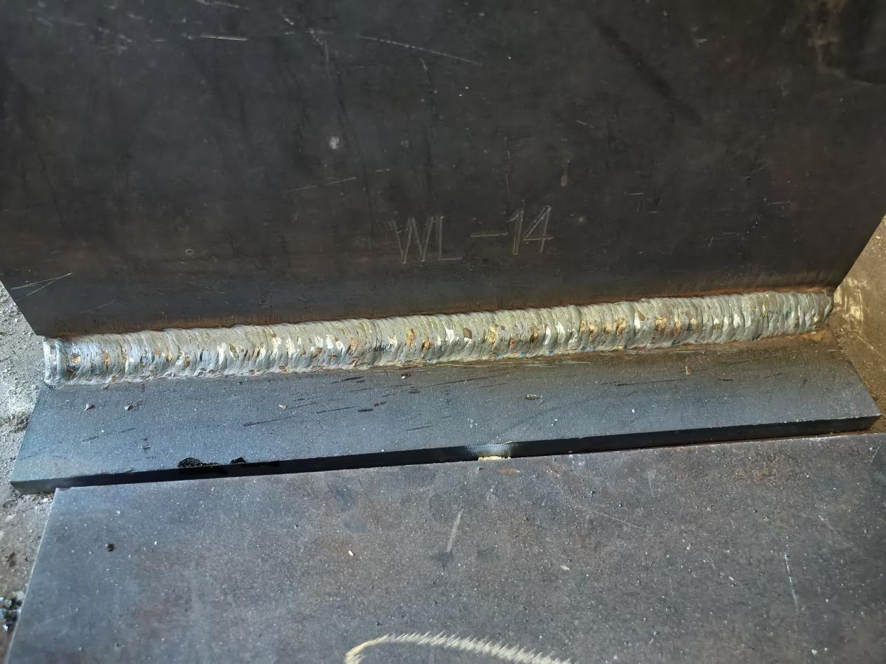 进入实操环节,焊工们迅速进入状态:调试设备、定位工件、引燃电弧…… 一系列动作行云流水。此次考核聚焦焊缝成型质量 :从焊道的平整度、波纹均匀度,到熔合线的贴合度,均以行业高标准严要求衡量。通过现场拍摄的焊缝细节(如图所示),可见焊道成型规整、色泽均匀,无明显咬边、气孔等缺陷,足见焊工日常训练的扎实积累。